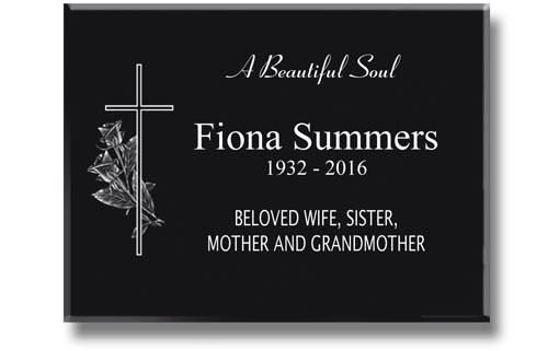 The highest quality black granite tiles of various shapes and sizes are used for engraving. These tiles can be glued on the headstones. These tiles can be oval, rectangular, square, hexagonal, heart shaped… Any kind of photos, graphics or text can be engraved on the granite tiles.